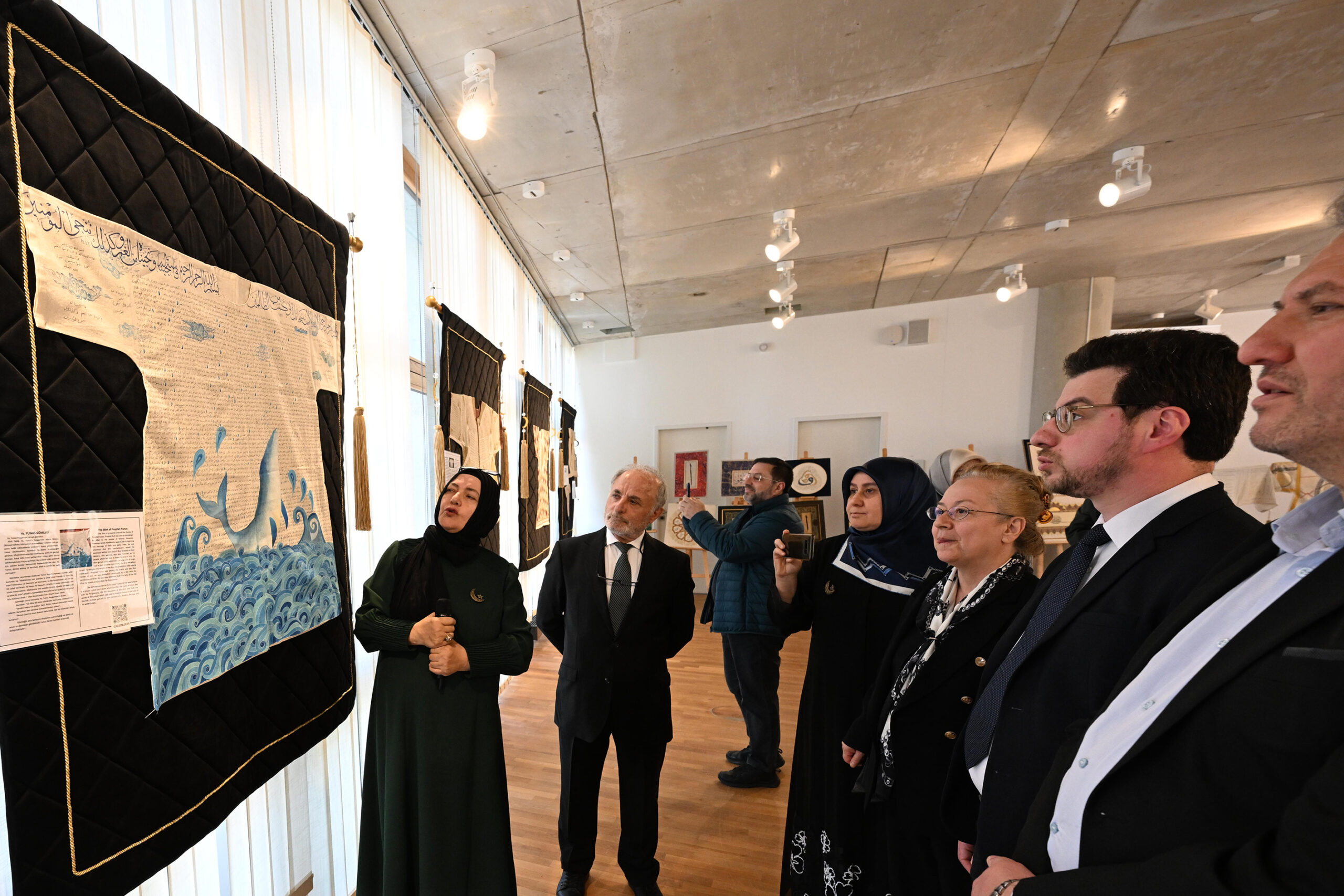 Diyanet İşleri Türk İslam Birliği (DİTİB) Köln Genel Merkez’de düzenlenen sergide hattat Dr. Mehmet Vanlıoğlu, tezhip sanatçısı Ayşe Vanlıoğlu ve 7 kişilik çalışma ekibi tarafından hazırlanan 30 eser, Alman ve Türk sanatseverlerle buluştu.